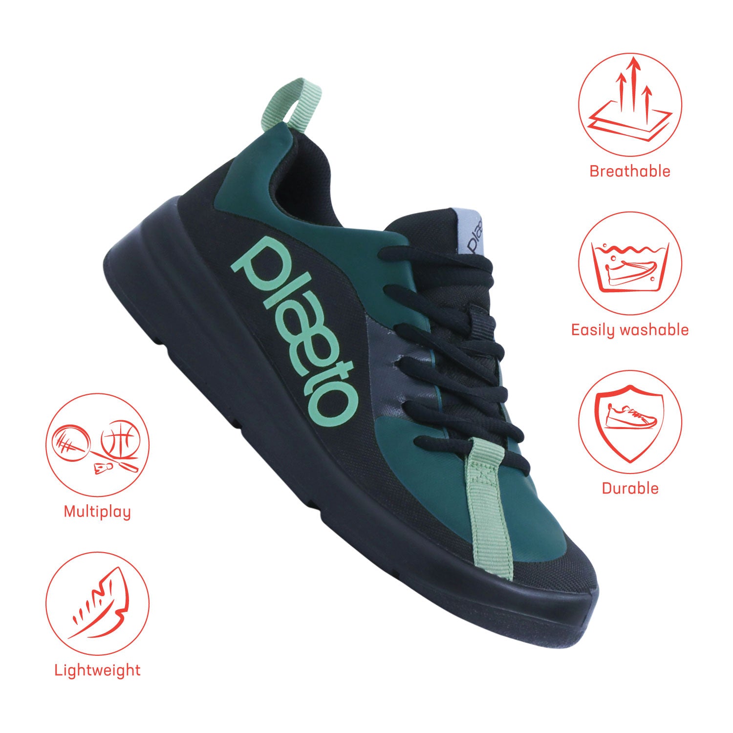 As Multiplay shoes, you can play tennis, badminton, run, gym, walk, or trek, on courts, tracks, fields, or playgrounds with Plaeto shoes. Best part is, thanks to the durability built into the product, even with all this play, there will hardly be any wear or tear.